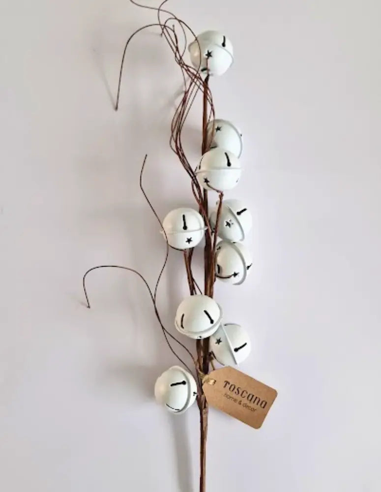 Este ramo decorativo con cascabeles blancos es una pieza única que combina la calidez de la naturaleza con la magia clásica de la Navidad. Sus ramas estilizadas en tonos tierra y los cascabeles de acabado mate crean un contraste elegante que aporta movimiento, textura y un toque festivo irresistible.