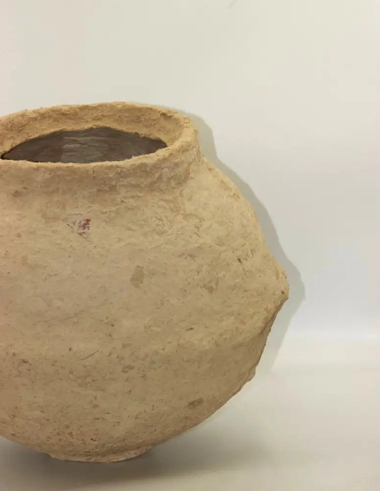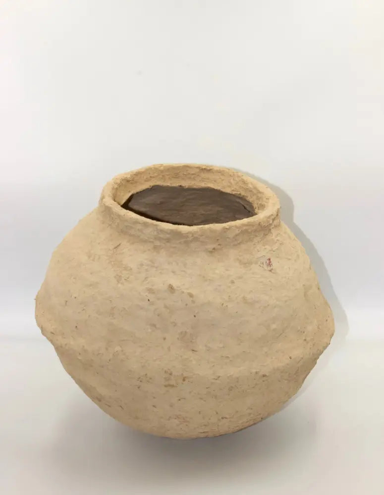 Jarrón elaborado en papel maché que se destaca por su singularidad en cada diseño, mostrando una apariencia robusta a pesar de ser ligero.